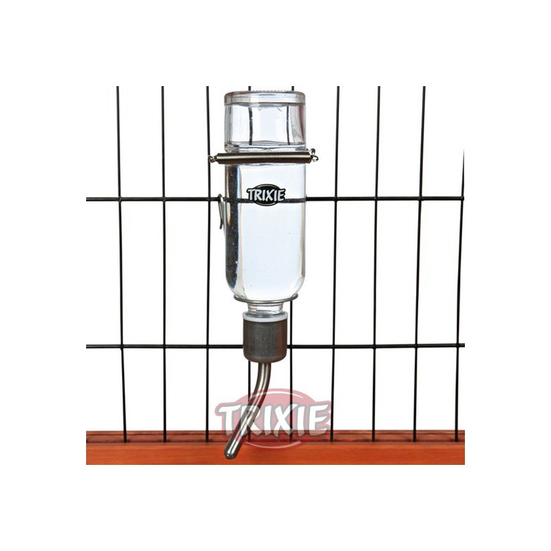 Bebedero de cristal con juguete flotante para comprobar el nivel del agua, con este tipo de bebederos nos aseguramos de que el agua de nuestros loros, conejos o roedores esté siempre limpia.