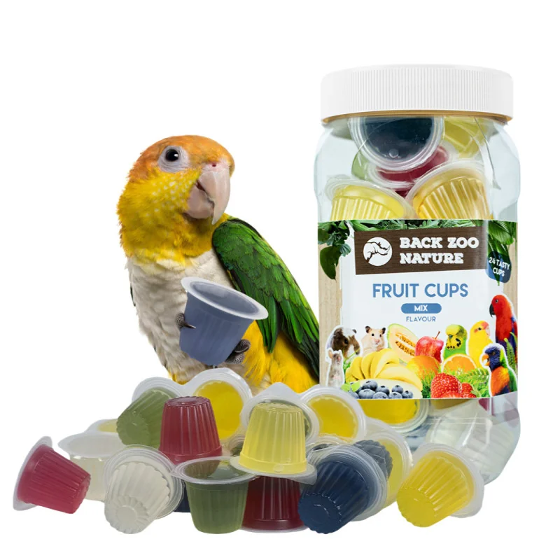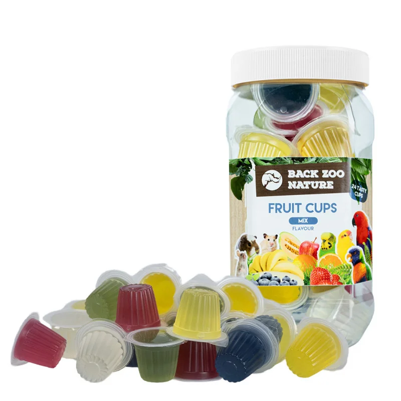 Gelatinas elaboradas única y exclusivamente para loros, conejos y roedores por Avonturia. Cada paquete contiene 24 gelatinas variadas (naranja, plátano, fresa, melón, yogur y miel). No es recomendable abusar de ellas, deben ofrecerse como premio y no darles más de dos o tres por semana dependiendo del tamaño de nuestra mascota.