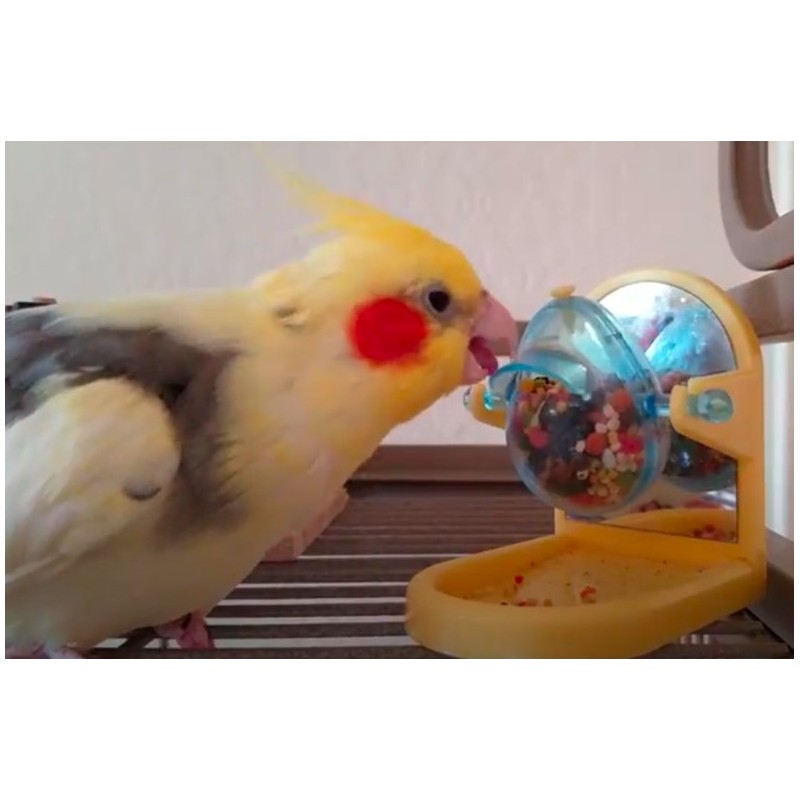 Quiero decir que hacen muy pocos juguetes interactivos para ninfas y este comedero es ideal. Me chifla verlas girando el bombo y cogiendo los pedacitos que caen en su base.
