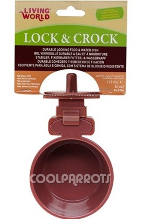 Grueso y resistente comedero de fibra con bloqueo para evitar que las aves, conejos o roedores puedan tirarlo o volcarlo. El plato puede ser fácilmente desprendido para el llenado o limpieza, simplemente se desliza el dispositivo de bloqueo y levanta el plato.