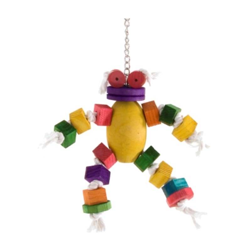Divertido juguete de madera de llamativos colores y forma de rana para loros de tamaño medio, como yacos, cacatuas, amazonas, eclectus …