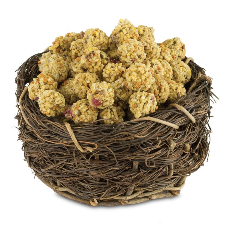 Estos deliciosos pellets de forma esférica y 2 cm aproximados de diámetro están compuestos por pellets, frutas (arándanos, papaya y albaricoque), y diferentes semillas, una mezcla balanceada y sana que les encanta y estimula su instinto natural de forrajear.