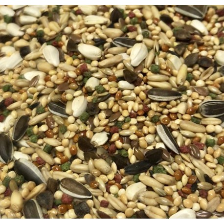 Alimento completo enriquecido con granulados VAM (Vitaminas, Aminoácidos y Minerales), para que las aves mantengan una excelente salud. Esta mezcla, destinada a una especie bien definida, fue elaborada en colaboración con el equipo científico de Loro Parque (Tenerife), donde se utiliza como alimento básico de todos los agapornis y otros papagayos enanos.