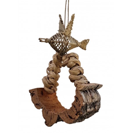 Este columpio 100% natural está fabricado en corcho, cadena de bambú y ratán, todos ellos materiales triturables y muy entretenidos.