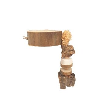 Esta percha en forma de plataforma de gruesa madera es ideal para loros de tamaño pequeño, y dispone de enganche para colocar en cualquier tipo de jaula o voladera.