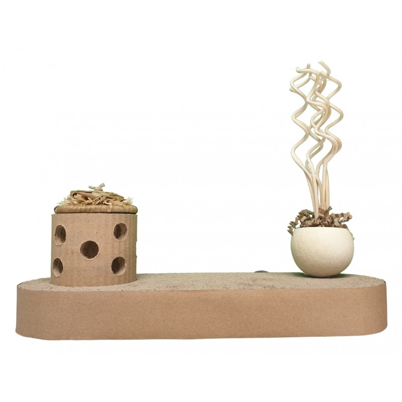 El cartón es uno de los materiales que más gusta destrozar a cualquier loro. Tanto la base como el rulo de este espectacular forrajeador están hechos con multitud de capas de este material.
