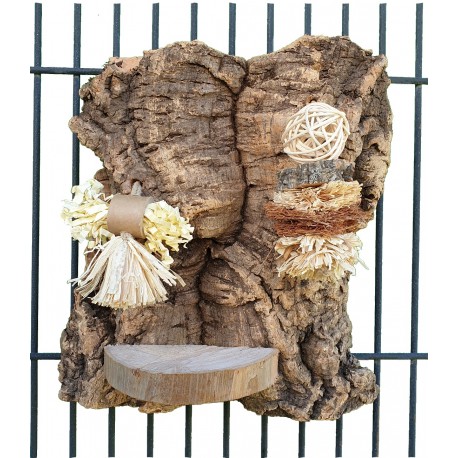 Dispone además de una plataforma de madera incrustada para facilitarles el acceso a las piezas y el descanso de sus patas mientras juegan.