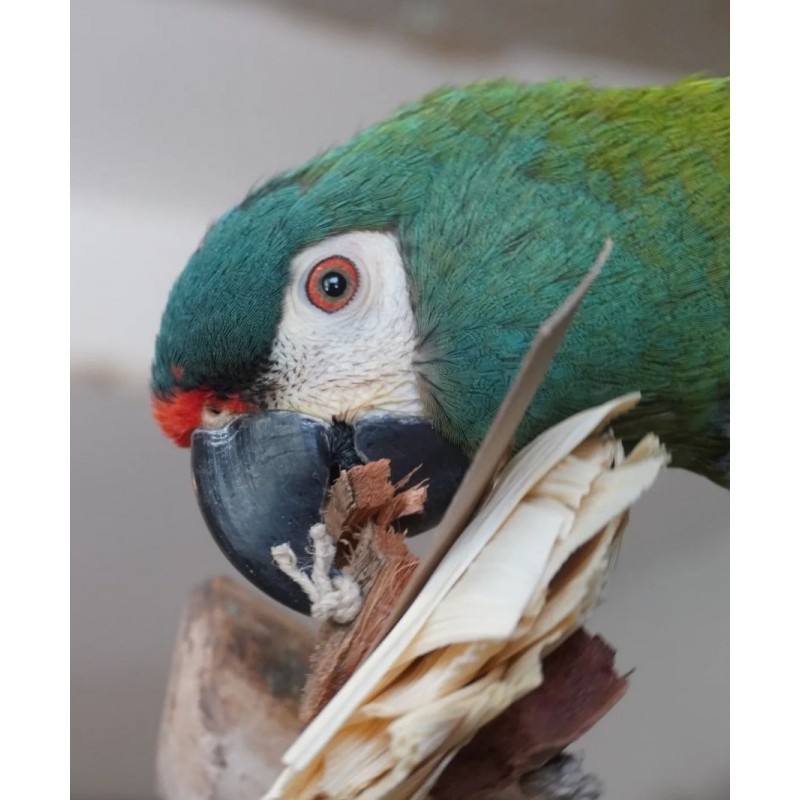 Juguete de pata realizado en materiales 100% naturales como crujientes hojas de maíz y estrellitas de coco con su cáscara.