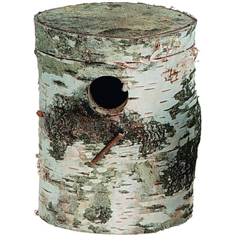 Nido de tronco de abedul con tapa deslizable para su limpieza.