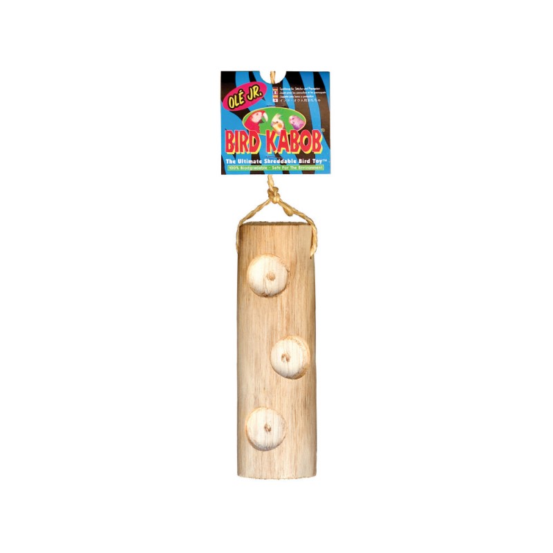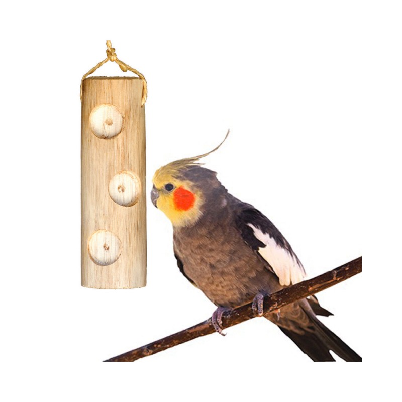 Este juguete 100% natural está compuesto por un cilindro de yuca con diferentes orificios, y una cuerda de sisal para poder colgarlo en cualquier tipo de jaula o voladera. Es ideal para pequeños loritos como agapornis, ninfas, pyrrhuras, caiques…