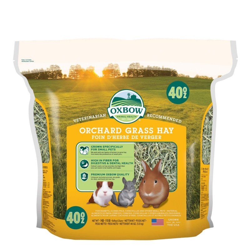 El Heno de Huerto Oxbow proporciona nutrientes altos en fibra y bajos en proteína y calcio. Es un heno suave, muy verde y de sabor dulce. Les encantará su olor dulce y su sabor. Al igual que los otros henos de fibra larga, la suave textura del Heno de Huerto tiene un alto contenido en fibra, es bajo en proteína y ayuda al sistema digestivo de los herbívoros, previniendo la obesidad y haciendo que su hora de comer sea más apetecible. Puedes mezclar con los otros henos de Oxbow para conseguir una dulce y nutritiva combinación.