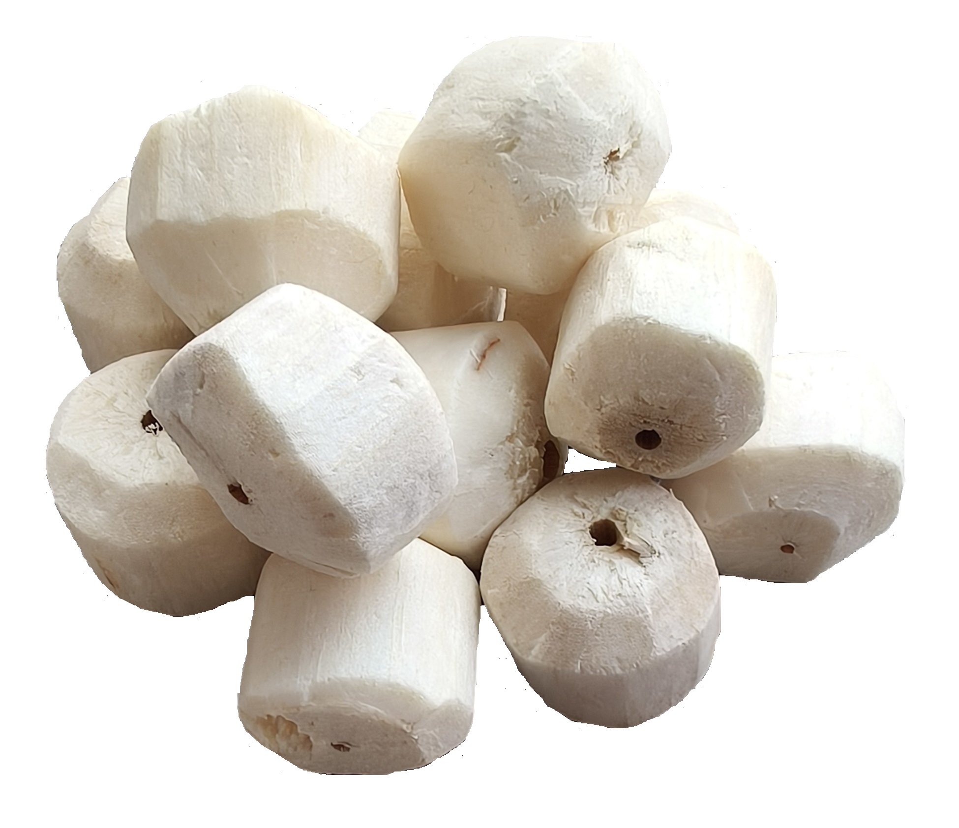 Pack de 12 bolitas de raíz de yuca para añadir a nuestras bandejas de forrajeo o para recomponer viejos juguetes.