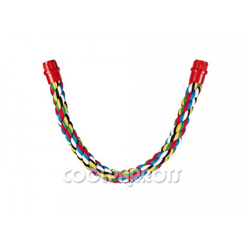 Divertida percha flexible en llamativos colores para poner en cualquier lugar de la jaula y de cualquier forma. Es ideal para aves de pequeño y mediano tamaño tipo agapornis, ninfas, caiques, cotorritas, you yous, pyrrhuras…