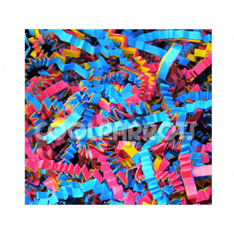 Bolsa de 50 gramos aproximados de pequeñas tiras de papel rizado en llamativos colores para rellenar cualquier tipo de juguete y convertirlo en un juguete de forrajeo. Ideal para cualquier tipo de loro y de juguete.
