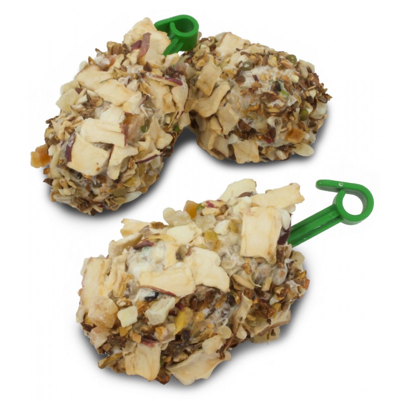 Deliciosos rollitos de maíz envueltos en frutas y semillas para pequeñas aves.