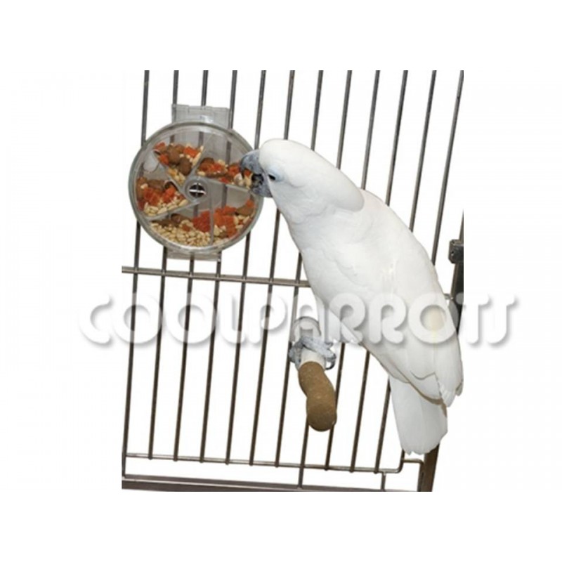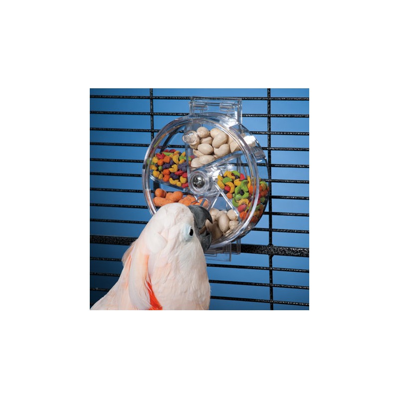 Este divertido juguete interactivo dispone de 5 compartimentos en los que podemos meter cualquier tipo de premio o comida. El loro debe hacer girar su frontal y sacar por sus agujeros el alimento deseado, ideal para cambiar su rutina y para tenerlos entretenidos durante largo rato.