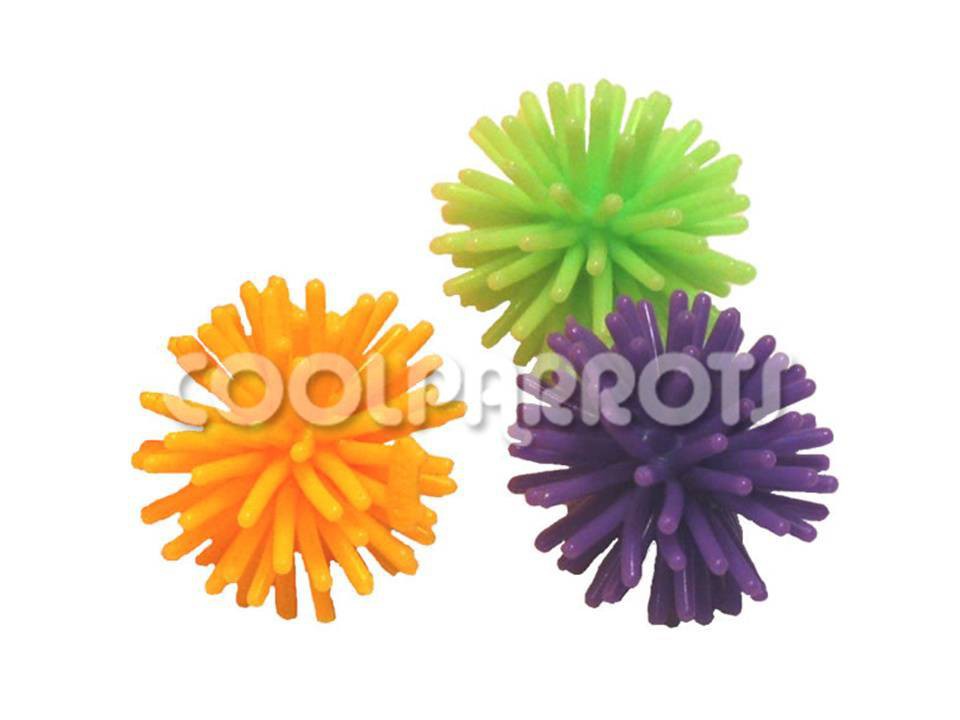 Llamativa bolita de goma en colores variados para colgar de cualquier juguete o para utilizarla como juguete de pata.