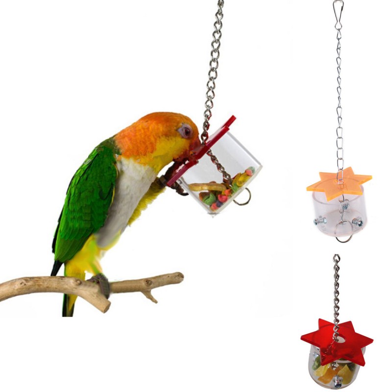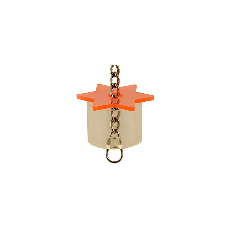 Juguete acrílico en forma de vaso con tapa en forma de estrella en el que podemos introducir sus premios favoritos o su ración diaria de alimento. Al ser transparente, el loro ve perfectamente su contenido y esto propicia que le pierdan el miedo y se acerque más rápidamente.