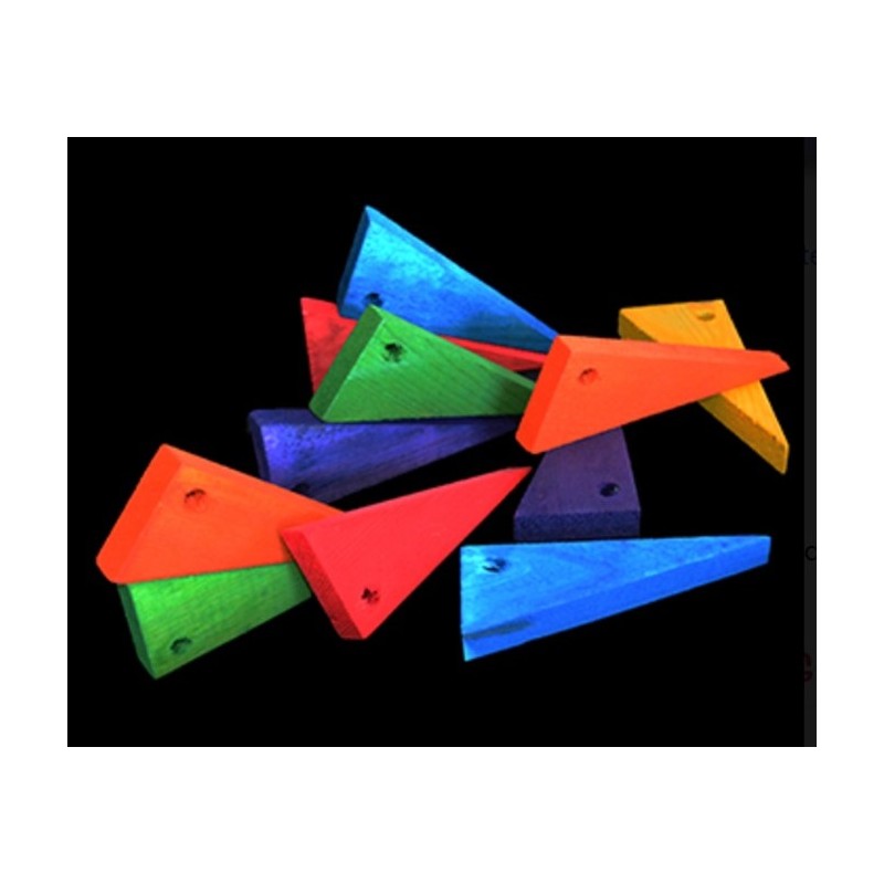Original triángulo de madera de llamativos colores para reconstruir viejos juguetes o para fabricar juguetes caseros. Ideales para aves de tamaño mediano y grande como yacos, eclectus, amazonas, cacatúas…